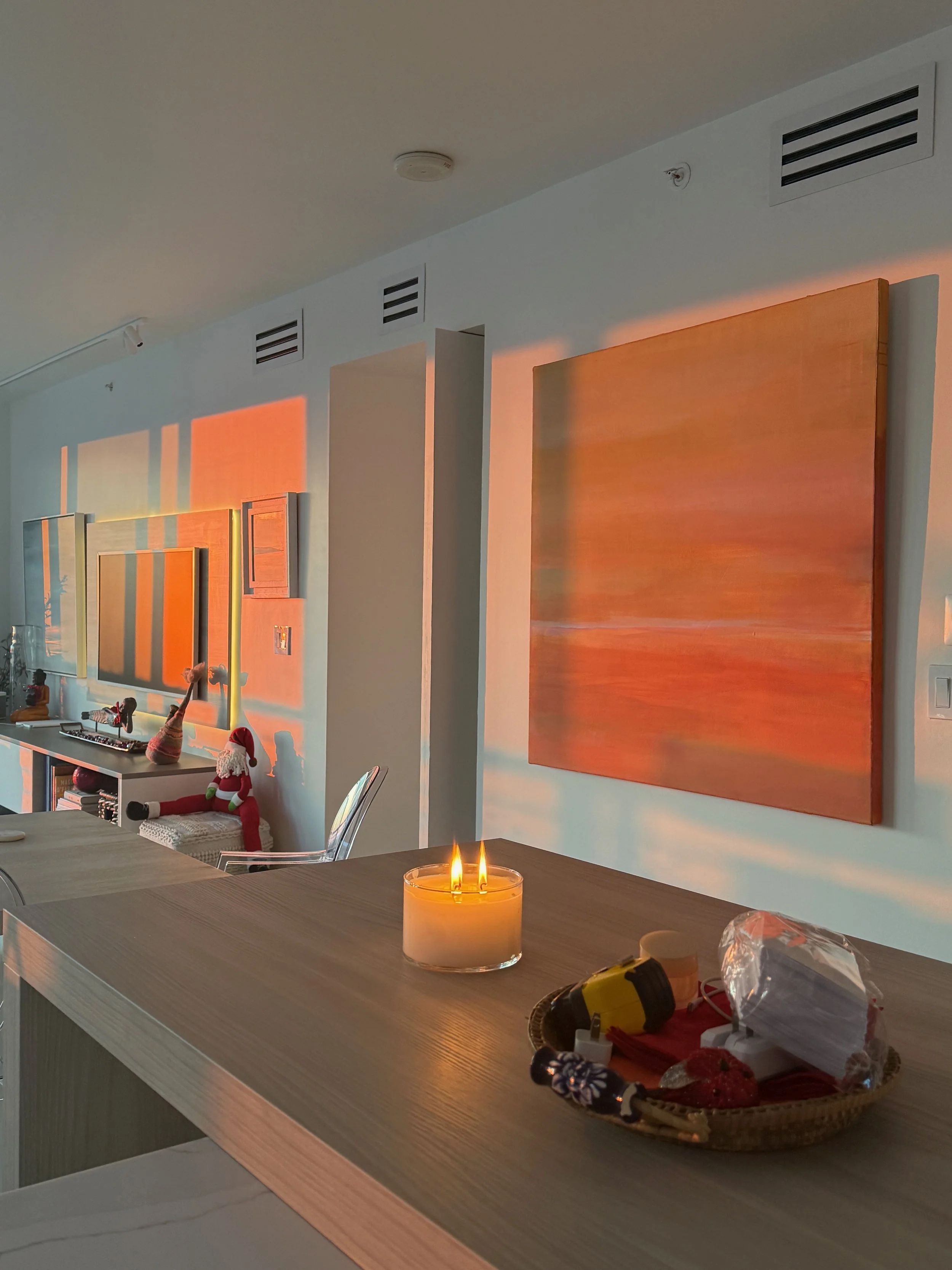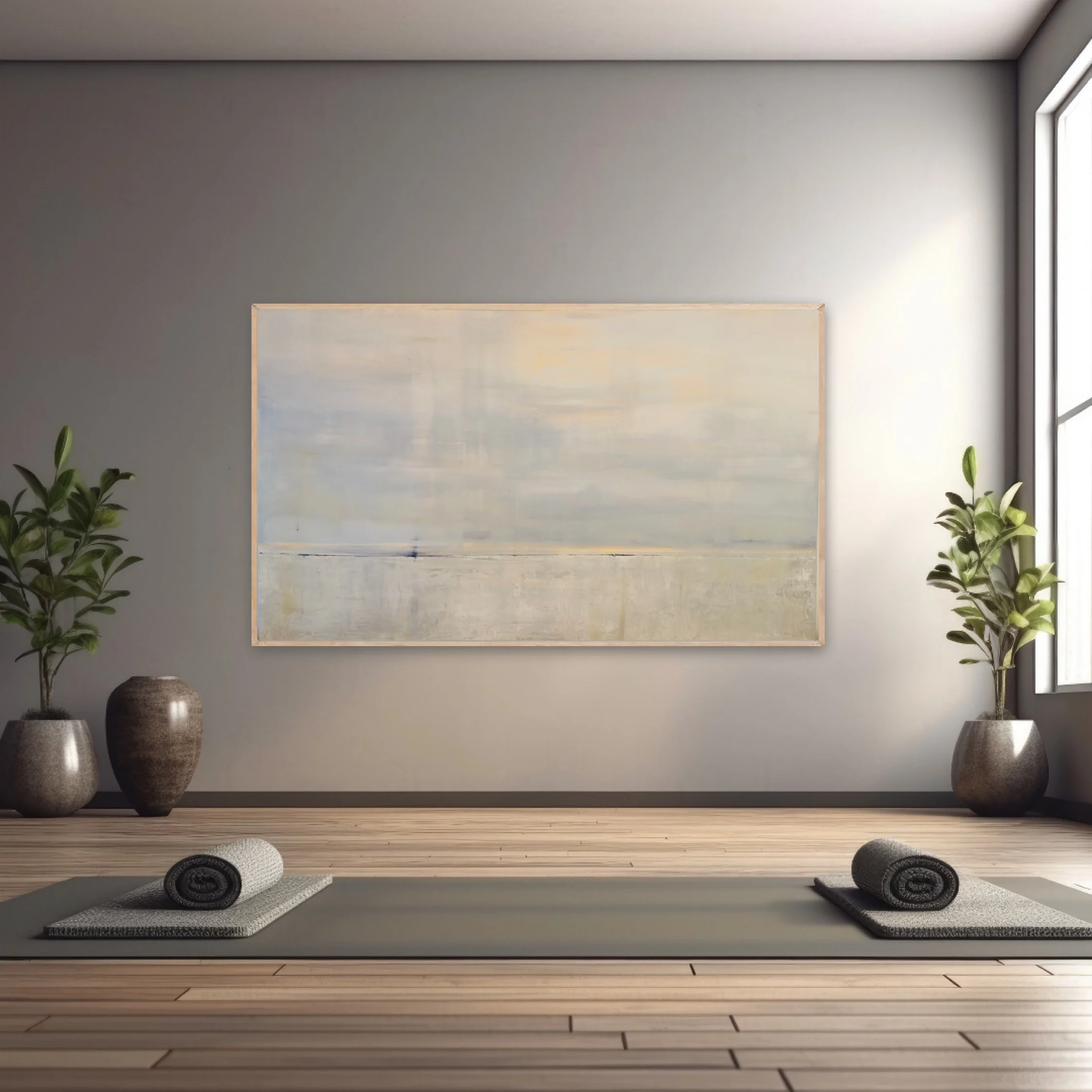 Working in series, Suzanne often creates multiple pieces that can be displayed together as triptychs or appreciated individually. Her work invites contemplation and calm, offering viewers a visual pause from the everyday and a gentle space for reflection and daydreaming