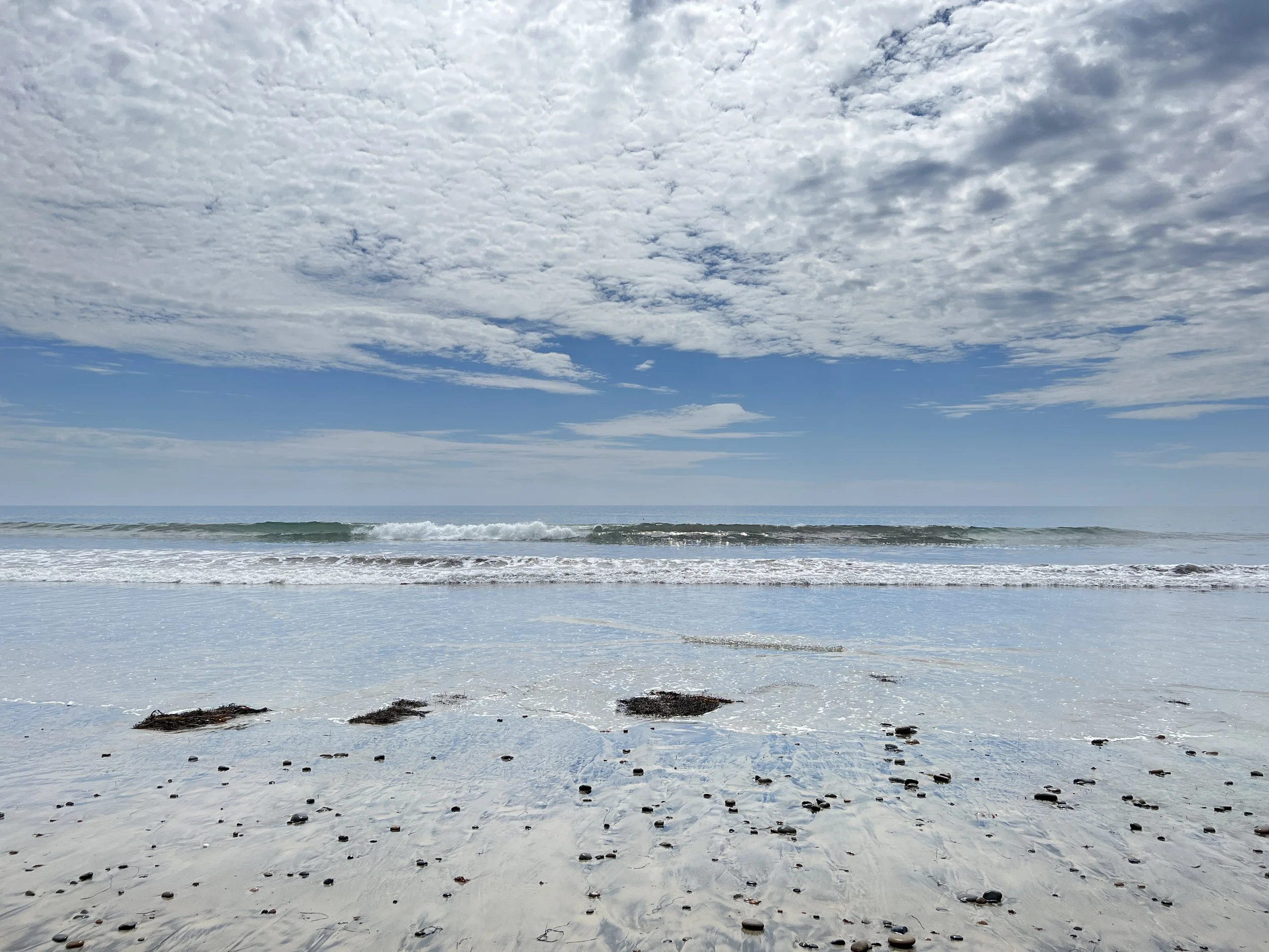 Suzanne draws much of her inspiration from memory and place—rugged coastlines, quiet beaches, crashing waves, and misty sunrises. These elements, along with the contrast between nature’s stillness and the noise of urban life, deeply inform her intuitive process. Each piece emerges organically, with layers of paint, pigment, and pastel building emotional depth and visual texture.